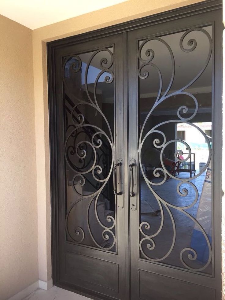 Cửa sắt mỹ thuật 2 cánh cân xứng cho nhà phố.